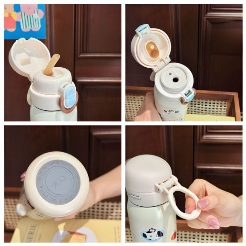 Cartoon Thermos for Students, Portable New Water Bottle Stainless Steel Double Drinking Straw Cup