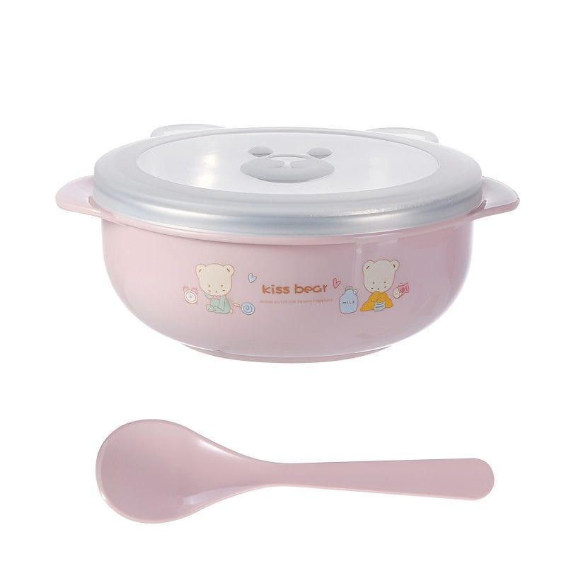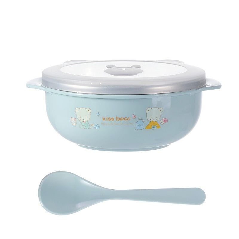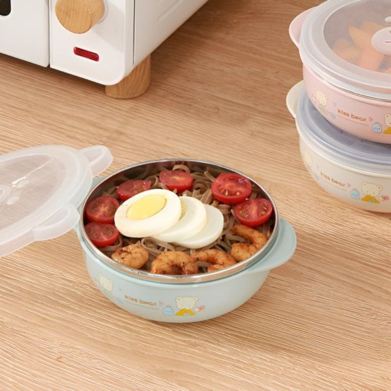 Children’s Food Stainless Steel Bowl with Lid Insulated Heat Preservation Bowl Anti-drop