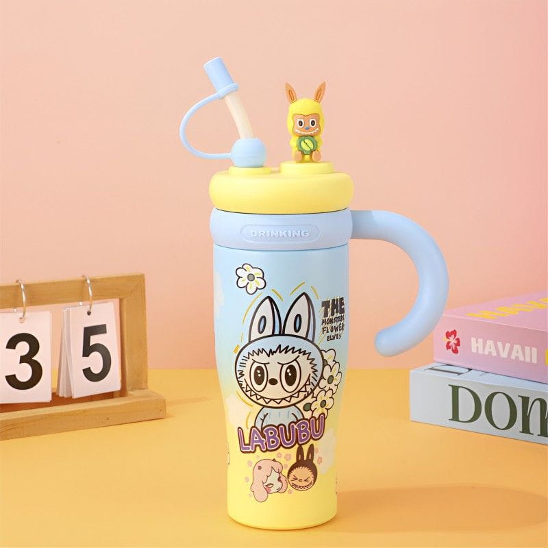 1. Stay hydrated in style with these adorable Labubu and Stitch themed vacuum-insulated tumblers, featuring a convenient handle and a built-in straw for easy sipping.