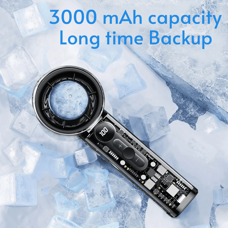 3000mAh ব্যাটারি ও 5V/2A ইনপুটের মাধ্যমে দীর্ঘ সময় কুলিং দেয়। কম শব্দে শক্তিশালী বাতাস প্রদান করে, যা যেকোনো জায়গায় আরামদায়ক ব্যবহার নিশ্চিত করে।
