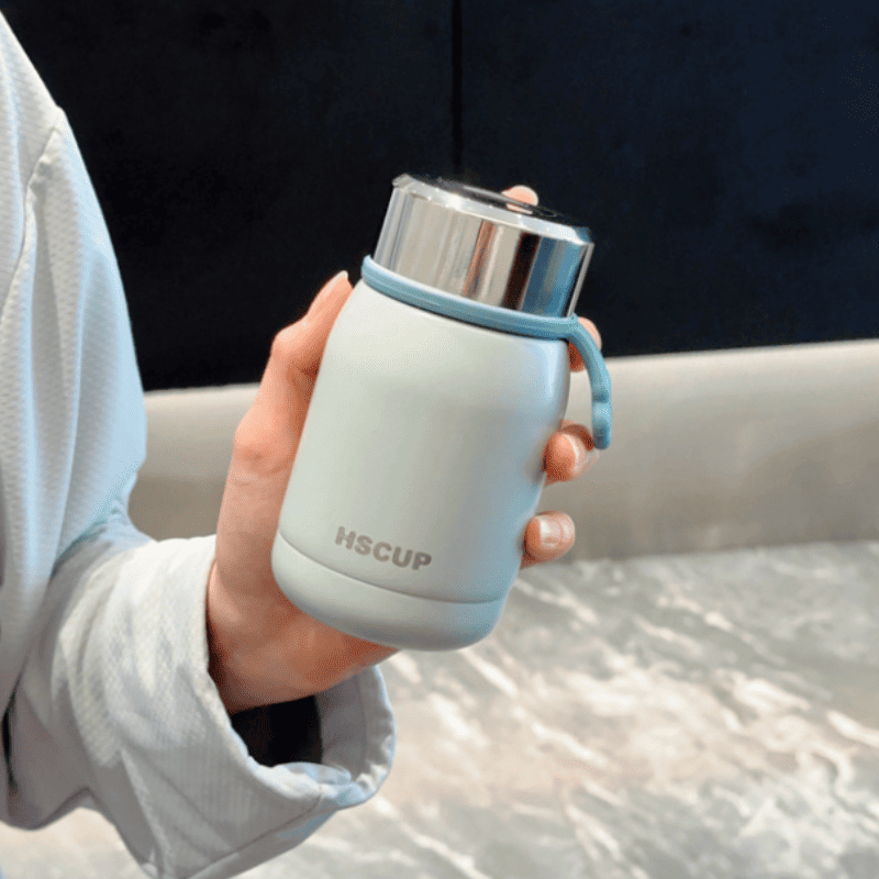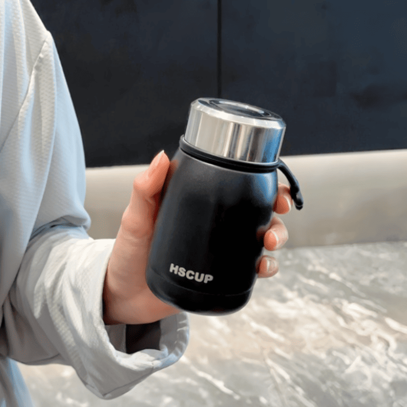 Keeps your drink hot or cold 1 to 2 hours hot/4 to 6 hours hot, cold longer in a mirror and screw Double-walled stainless steel material